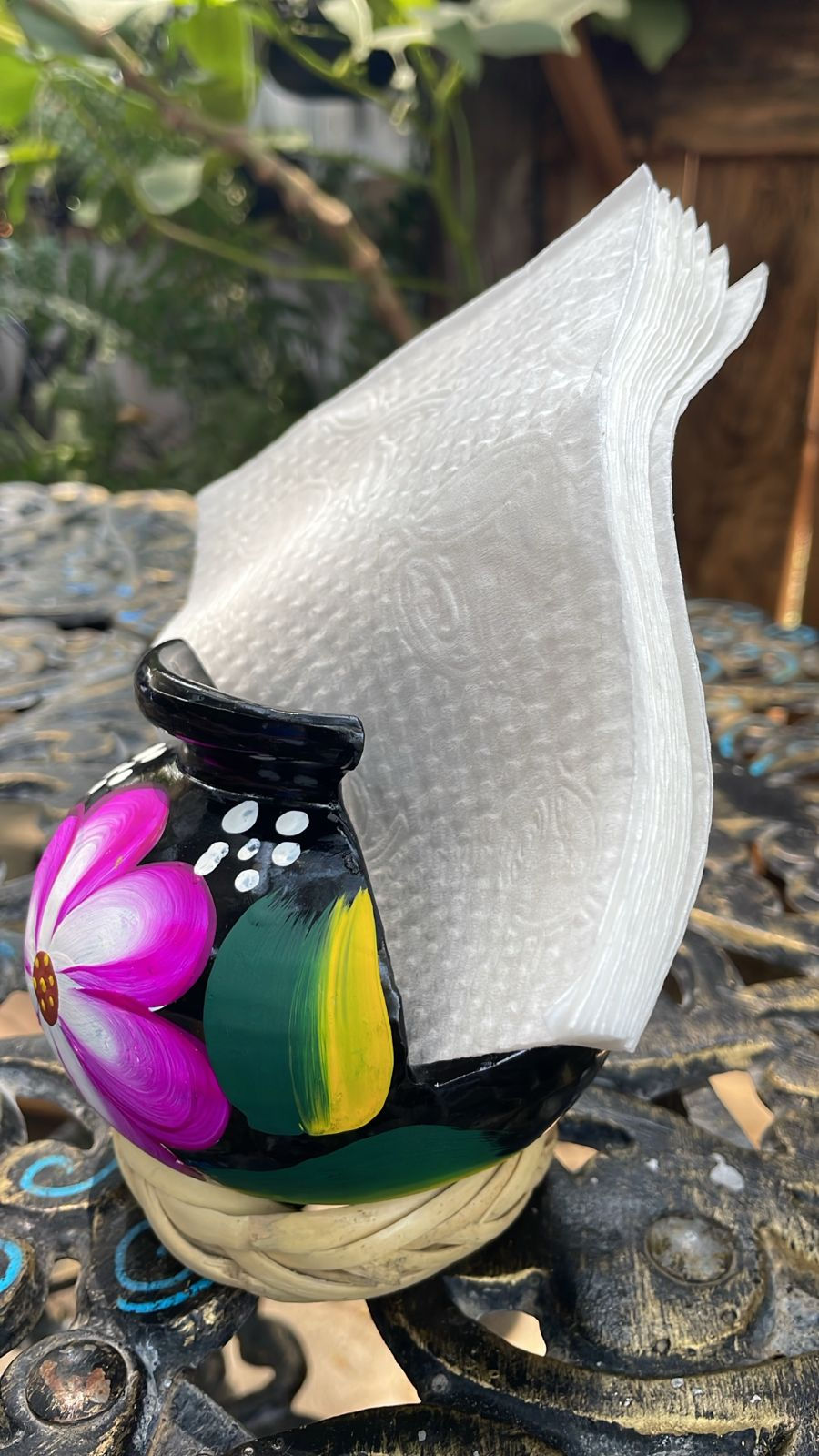 Servilletero De Barro Negro Pintado número 1